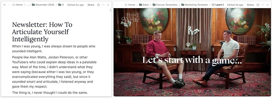 Have your outlines, content, and research all in one view. Connect it all to Al chats, bring a new dimension to creative work