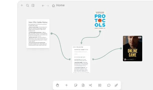 Add any workspace item – from notes to YouTube videos – and connect them to multiple AI chats, visually.